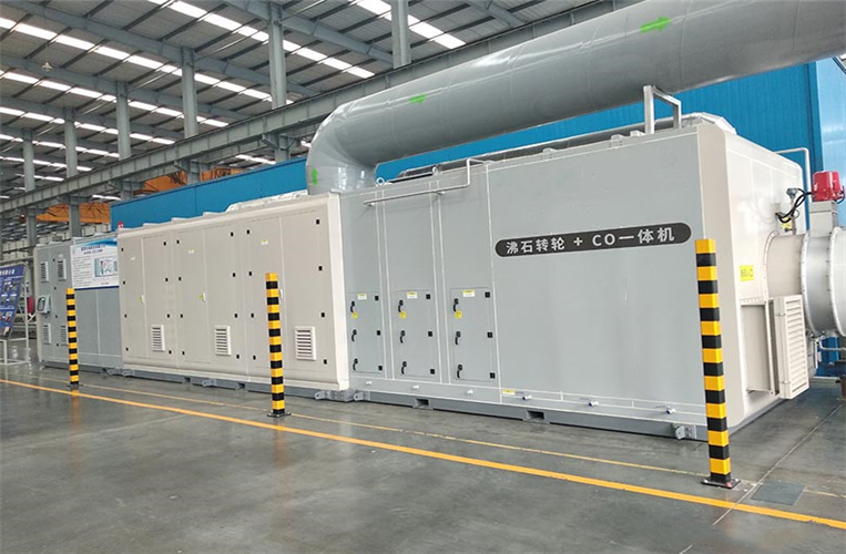 沸石轉輪吸附濃縮裝置采用吸附-脫附-濃縮焚化三項連續程序,主要用于有機廢氣的治理; 特別適合于大風量,低濃度場合。該吸附裝置以陶瓷纖維為基材,做成蜂窩狀的大圓盤輪狀系統, 輪子表面涂覆疏水性沸石做吸附劑。沸石轉輪吸附濃縮裝置主要由廢氣預處理系統、分子篩轉輪濃 縮吸附系統、脫附系統、冷卻干燥系統和自動控制系統等組成。轉輪后一般有后處理系統,處理工藝為沸石轉輪+RCO、沸石轉輪+RTO。